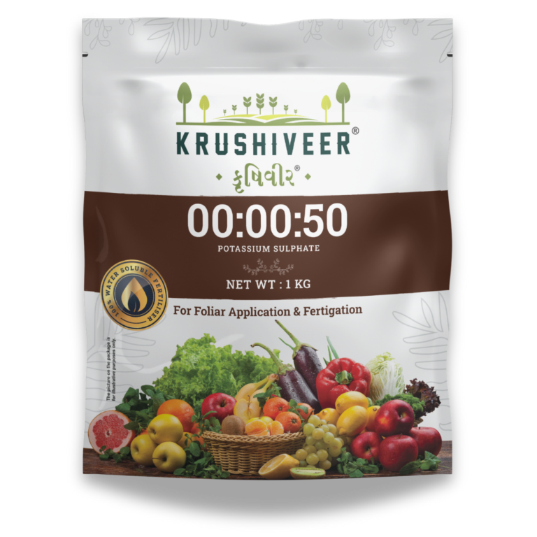 Potassium Sulphate (00:00:50), also known as SOP, is a chloride-free fertilizer rich in Potash and Sulphur. It improves taste, sweetness, and shelf life of produce while making crops resistant to stress. Highly recommended for fruits, vegetables, and sensitive crops.